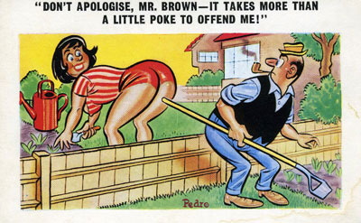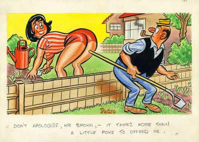 Millar was a commercial picture postcard artist who used the penname of ‘Pedro’ and produced a large series of saucy seaside humour postcards in the 1960s. He took over where the Donald McGill saucy postcards left off and, in the more relaxed atmosphere of the 1960s, produced far more suggestive cards than ever McGill could get away with.