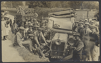 The second lot we would like to draw your attention to is number 140 and will certainly be of interest to any topographical postcard collectors. An exemplary real photographic range of Hampshire locales and other scenes, including this unfortunate motorist who has had an accident on Ghost Corner and drawn a bit of a crowd. This lot will be available at an estimate of £1300, so make sure to be watching when it and our other postcard collections go under the hammer this Wednesday.