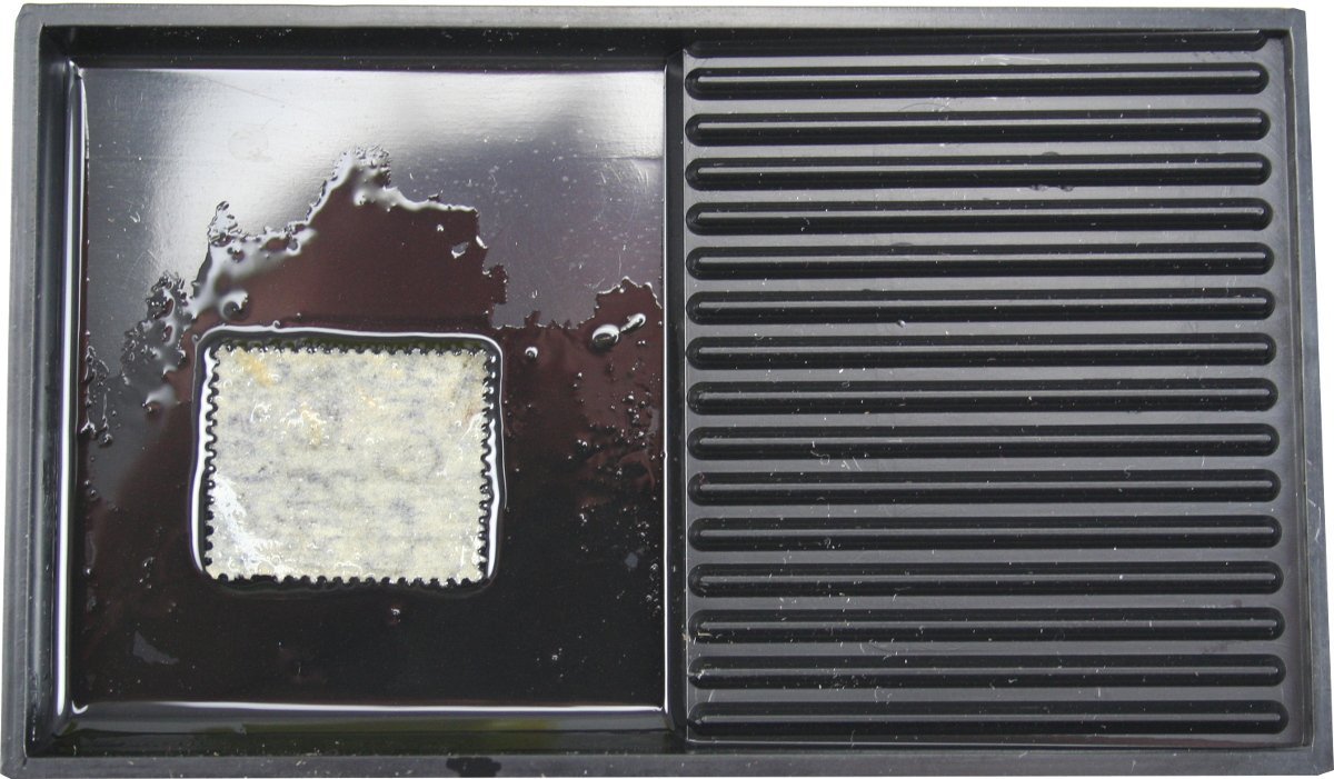 1. Use enough non-toxic watermark detector fluid to thinly cover the bottom of your tray.