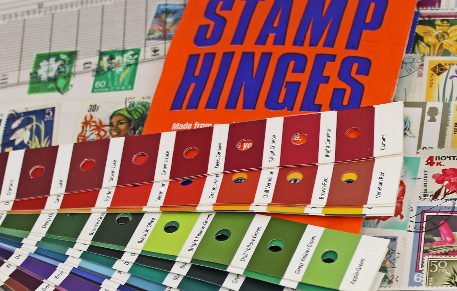 Hinges: The small gummed strip that’s used to fix a stamp to the page of an album is called a hinge. You’ll need some of these to arrange your stamps neatly.