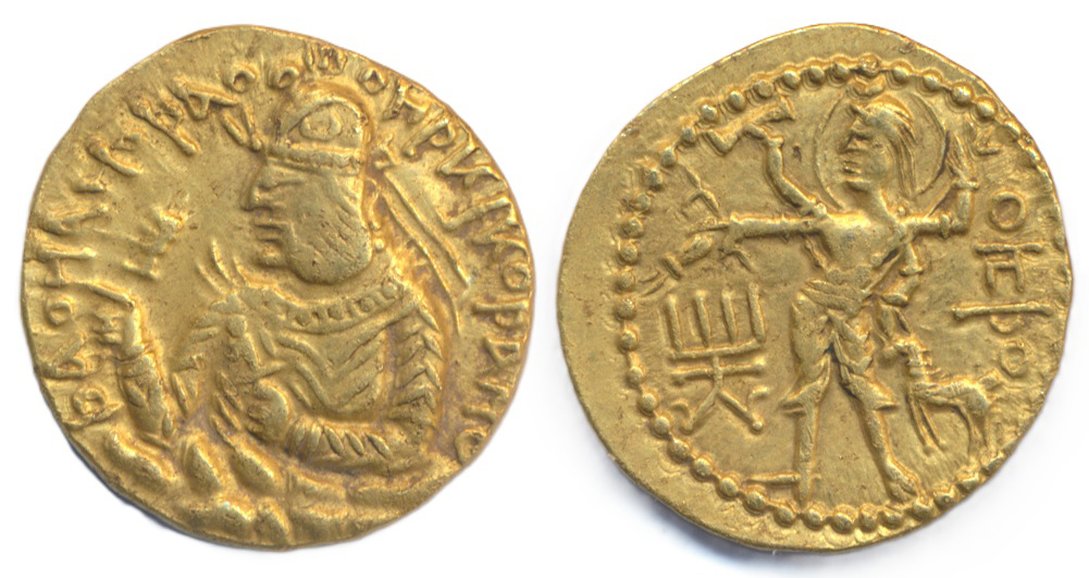 A real treat for us here at Warwick & Warwick is an Ancient India selection, including this fantastic lot, lot 275. A Kushan, Huvishka 152-192 CE gold stater, 7.97g, obverse bust of king left, reverse four-armed haloed Siva, fine.