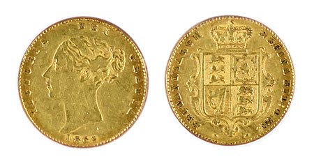 And half sovereigns include this 1862 second young head and this 1918P in high grade.