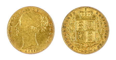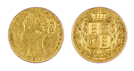 Sovereigns include this 1825 bare headed proof, this 1831 proof, a 1838, a 1839 proof, a 1839, this 1841, the rare 1859 Ansell variety and this 1917 London mint.