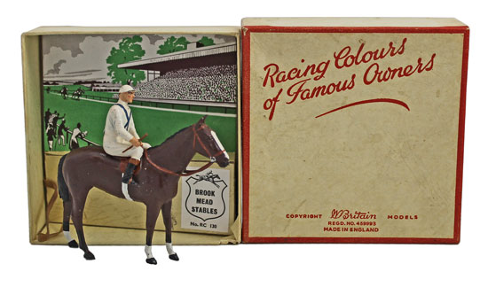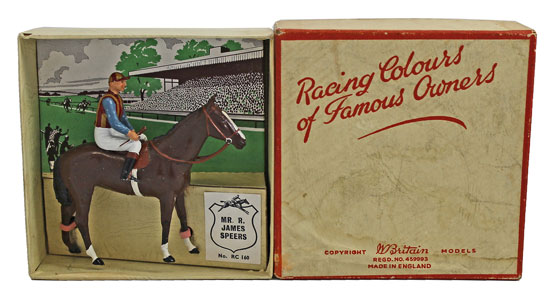 A collection of scarcer Britains Racing Colours including USA and Canadian figures will be offered in our 17th July Toy auction in 28 lots.