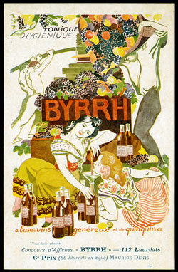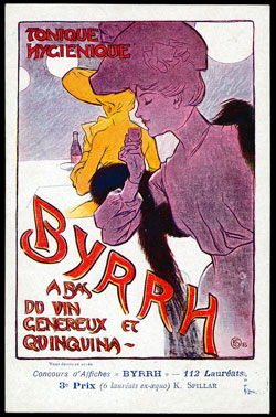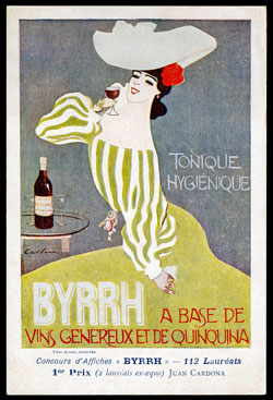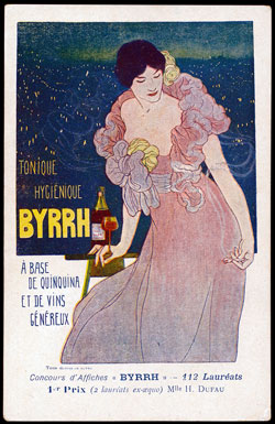 In 1903 a competition was organised by the company to design advertising posters for the drink and a total of 1900 entries were received. The first prize was 2000 francs (around £5,000 in today’s values), the second 1500 francs, the third 1000 francs and the fourth 500 francs. Several of the entrants were established commercial artists such as Maurice Denis and Raphael Kirchner. However the famous Czech artist, Alphonse Mucha, well known for poster and postcards, did not take part. The joint winners of the competition were Juan Cardona and Clémentine Hélène Dufau. Two 2nd places were awarded, six 3rd, five 4th, thirty-one 5th and sixty-five 6th. Many of the submitted designs were printed as a series of 113 postcards, with the name of the artist and with its position gained in the competition. The cards are most attractive and many have artistic art nouveau images. The rules of the competition stated that the design had to include the words “tonique”, “hygiénique” and “à base de vins genéreux et quinquina”.