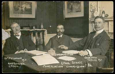 Conciliation Commission meeting with Mr. T.P.O’Connor MP, Mr. J. Shackleton and Col. Kyppin Taylor MP. Conciliation Commission. As a consequence of the commission a committee has been formed in which Protestants and Catholics are fairly represented. It is hoped that this committee will work for peace. A policeman said to me, This strike is nothing, it is there (sic) religious riots that are killing us. They have been upon us for the last three years.