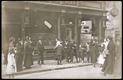 The Warwick and Warwick auction held on July 16 2014, contained a range of 42 Carbonora postcards of the strike, which had all emanated from a Liverpool policeman who was on duty during the strike. All of the cards had captions written in ink, by the policeman, on the reverse. The collection sold for £1,770 including buyers' premium. Some of the captions provided an insight into the feelings of the police at the time. Captions in italics are those hand-written by the police officer.