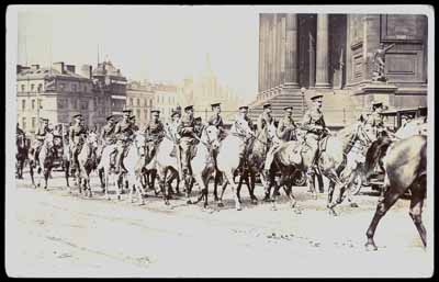 The Scots Greys passing the south end of St. George’s Hall. The hall became the headquarters of the troops and special constables throughout the strike. It was connected to the branch by telephone. On a day of special danger we telephoned for Captain Davis and all the men he could spare – the last eleven.