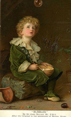 The iconic “Bubbles” postcard, showing an addition of a bar of Pears Soap to the painting by Millais.