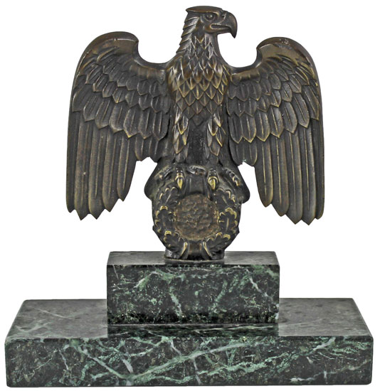 Other items of Third Reich memorabilia that sold in recent auctions include this bronze desk eagle fitted to a marble base standing 15.5cm tall. The swastika had been removed at some stage and it sold for £200 in our August 2017 auction.