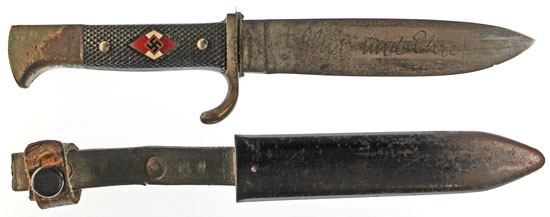 Hitler Youth daggers had the legend Blut und Ehre (Blood and honour) etched into the blade and this dagger made by Carl Heidelberg of Solingen sold for £200 in our auction.