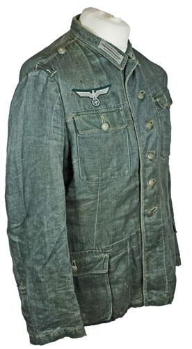 A German Army M43 HBT jacket and trousers sold in our 14th December 2016 auction for £150 and a 1937 Army overseas side cap made of green wool sold in the same sale for £150 as well.