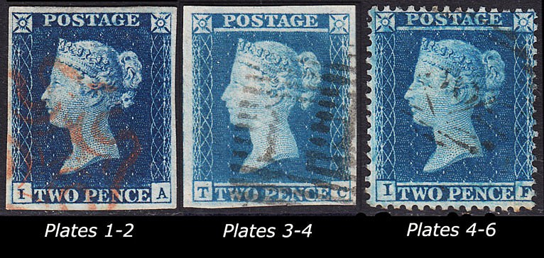 The Twopenny Blues issued between 1840 and 1858 were printed from just six plates (1 to 6) and it’s easy for any collector to tell them apart.