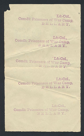 The POW could not be found at the camp, so a clerk at Thayetmyo redirected the cover in red manuscript, writing ‘Try Bellary’ on the front. Only five other surviving items of incoming mail to Thayetmyo are recorded.