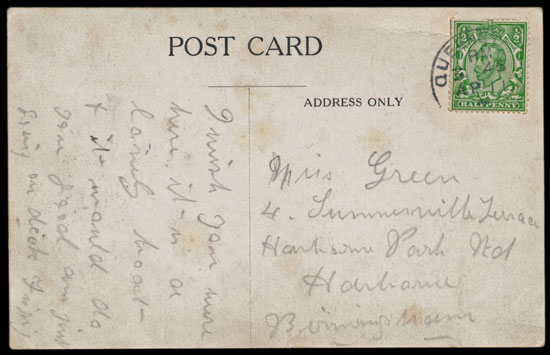 The postcard mailed from Titanic survivor, Sarah Daniels, written when she was on board the ship and posted from Queenstown, in Ireland, failed to sell in the 18 July auction. However a private treaty sale has subsequently been negotiated with a private buyer from the south of England. The selling price was £8,600.
