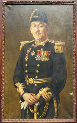 The full medal details are Distinguished Service Order, 1900 China War Medal without clasp, 1914-15 star trio with MID oak leaf, Belgian Order of the Crown commander’s neck badge, Belgian Croix de Guerre with 3 palm leaves and Monaco Order of St Charles commander’s neck badge to Commr G.B. Spicer-Simson R.N. (Lieut G.B.S. Simson H.M.S. Waterwitch on China), with matching miniatures. The medal group was offered together with an outstanding array of personal papers, photographs, newspaper cuttings, invitations, presentation pieces etc, including stunning three quarter length framed oil on canvas portrait in full uniform by Tremayne Lark, purpose made felt lined metal tin with name plate on lid containing naval cocked hat made by Gieve & Sons, gold braid rank epaulettes, naval dress belt and sword hanger, 4 pairs white gloves, stiff collar and 2 handkerchiefs with S monogram all in very good condition, DSO bestowal document, diploma for Belgian Order of the Crown, 1927 Buckingham Palace letter with permission to wear Monaco Order of St Charles, a box file on Lake Tanganyika with over 70 photos most annotated on the back, press cuttings, typed account of Expedition, hand drawn maps of actions with times and positions of all ships, lectures he gave, letters etc, a 25cm silver presentation plate with an engraving of one of the gunboats in the centre from Thornycroft & Co after his talk on the Expedition, a large presentation photo album from Thorneycroft with various photos of Mimi and Toutou including photos of trials marked “secret”, design drawings etc, a scrap book of press cuttings and photos of the Expedition, large Union Jack flag, Vice-Admiral flag thought to have been flown in East Africa to confuse the Germans as to the size of the British naval contingent, photo album and letters of Yangtze survey, photo album and letters from Gambia, a large silver cigarette box lid engraved Presented to the Official Interpreter of the International Hydrographic Conference London 1919 Captain G.B. Spicer-Simson D.S.O. Royal Navy, by the visiting delegates of the Conference as a token of gratitude for his good services, an album of mostly post war photos, invitations, passes etc from London and Europe, book La Campagne du Tanganyika by Moulaert with hand written notes throughout etc.
