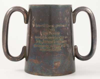 Sergeant Fenton was presented with a 2 handled silver coloured tankard, made by Mappin & Webb, engraved on the front “Sergt W. Fenton 19th Hussars from Mrs Barrow for services rendered to her son Lt Col Barrow 19th Hussars during & after the Battle of El Teb February 29th 1884.” This was included in the sale, which took place on the instructions of the family.