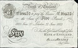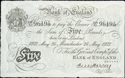 Particular highlights of this section included these Harvey notes, a 1923 £5 which sold for £436, and this Manchester Branch 1922 £5, which sold for £566.