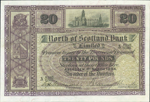There were 6 North of Scotland Bank lots, the highlight of which was this 1934 £20, graded as \'extremely fine\', achieving £401.