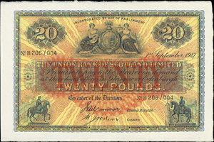 The Scottish banknotes section came to an end with the Union Bank of Scotland notes. The stand out lot of this section was this 1947 £20, graded as \'extremely fine\', which was snapped up for £377 by the lucky bidder.
