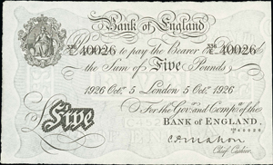 This Mahon 1926 £5, graded as \'extremely fine\', went for a total of £424.