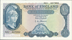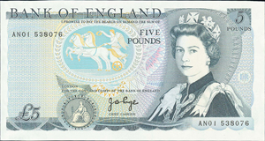 ...to this Page 1973, £5 AN01 first run, in uncirculated condition, which achieved £177.