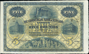 This early Commercial Bank of Scotland 1918 £5, graded as \'extremely fine\', sold for £566.