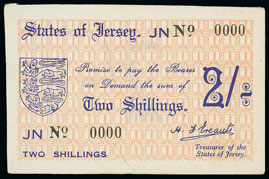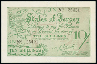 This section also included Jersey wartime issues including this H.F Ereaut 1941 (Jun) 2 shilling note with serial number JN0000which sold for £519.
