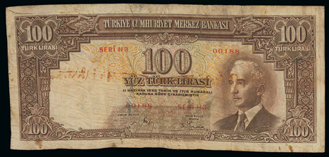 In our world banknotes section this scarce Turkey 1938 Law of Hariran 1930 second issue 100 lire note graded as fair sold for an outstanding £914.
