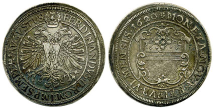 This scarce German States Ulm 1620 thaler achieved £1032.