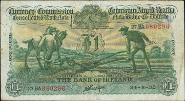 This Irish 1932 Bank of Ireland £1 ‘Ploughman’s’ banknote sold for £188.
