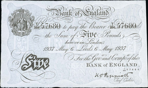 Though mainly attributed to London, there were also a range of Peppiatt banknotes attributed to 8 different branches across England. This 1937 Leeds Branch £5 example, graded as \'good very fine\', sold for £305.