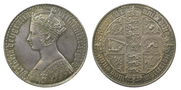 Always popular and arguably the most beautiful coin Great Britain has ever produced was this 1847 Gothic crown, graded as \'good extremely fine\', which realised £4,012. Well worth the money for such a lovely example.