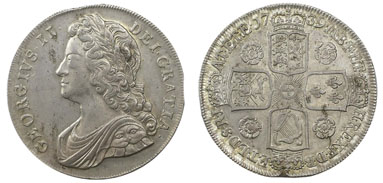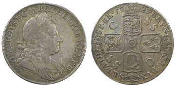 Milled coinage lots also were popular with bidders, with this George I 1723 SSC crown graded as \'nearly very fine\' realising £1,062.