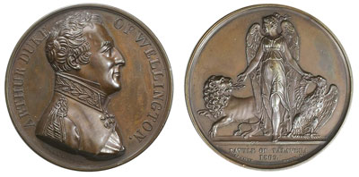 A number of Duke of Wellington commemorative issues were offered in the medallic and commemorative section of the auction. This 1814 Battle of Talavera medal by Donnadio, La Fitte and Mundie realised £153.