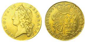 This George II 1739 two guineas described as \'good fine\' achieved £826, despite being from a mount.