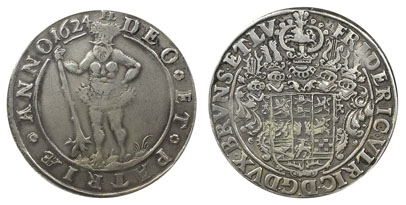 In the world coins section a number of thalers were offered. Examples include this German States Brunswick-Wolfenbuttel 1624HL thaler which realised £141.