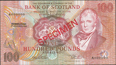And this Scottish 1992 Bank of Scotland £100 specimen banknote achieved £188.