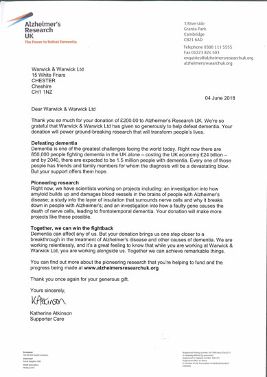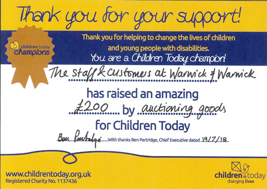 We are excited to announce that the customers and vendors of Warwick & Warwick have raised £575 for Claire House Children’s Hospice, £200 For Children Today and £200 for Alzheimer’s Research UK, in our recent sales. The lots included collections of modest value properties, combined together, to form a saleable lot for charity. We would like to extend a warm thank you to all whom have made this possible and hope to see great benefit in the future.