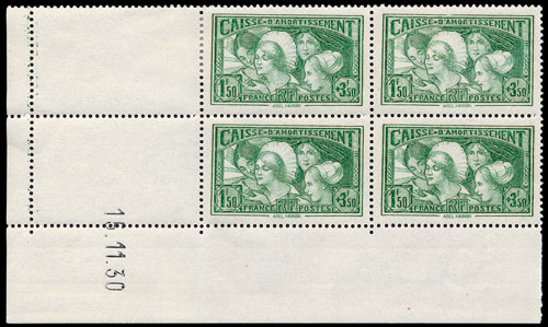 The French lots include a superb collection of middle period issues in dated corner multiples offered in about 20 lots, amongst which is this very attractive 1931 Provinces block of 4.