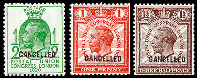 Towards the end of the auction there is a 1929 PUC low value trio each with ‘cancelled’ ovpt.