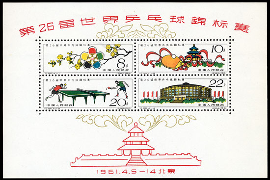 Also spotted in a Sports thematic collection, a 1961 Table Tennis mini sheet.
