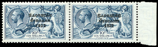 The Commonwealth section includes a range of early Irish overprints, including high values and some rare varieties. This 1925-8 10/- pair has wide and narrow dates.