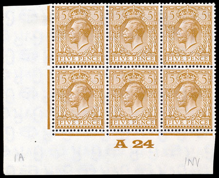 Also in the same section is a remarkable interpanneau block of 60 of the 1924-6 1½d, with catalogue value from £10,900.