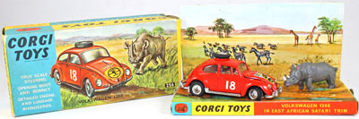 Lot 899 a Corgi East African Safari VW 1200 No. 256 achieved a total of £141.
