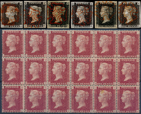 Penny blacks sold well; lot 562, a plate set, sold for £1,090. Single stamps sold for up to £165 each and an 1858-79 1d red block of 18 sold for £248.