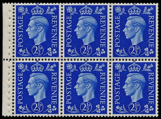 The Great Britain section included various lots of KGV & KGVI booklet panes. This inverted watermark pane sold for £130.
