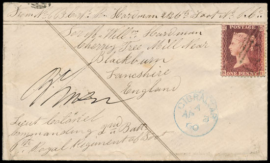 This charming letter sent in 1860 by a soldier from Gibraltar to Blackburn realised £189.