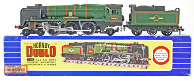 In the OO gauge section the ever popular Hornby Dublo models included this BR 34042 ‘Dorchester’ locomotive and tender, described as \'excellent in an excellent box\', which achieved £259.