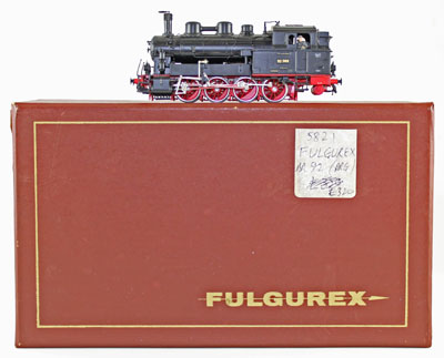 Foreign manufactured locomotives were sought after in this sale. Examples included this Swiss made Fulgurex 0-8-0 tank model which achieved £200.